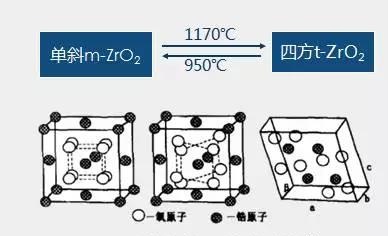 在常壓下,純 ZrO2 共有三種晶態(tài):單斜(Monoclinic)氧化鋯(m-ZrO2)、四方(Tetragonal)氧化鋯(t-ZrO2)和立方(Cubic)氧化鋯(c-ZrO2),上述三種晶型存在于不同的溫度范圍,并可以相互轉(zhuǎn)化:
