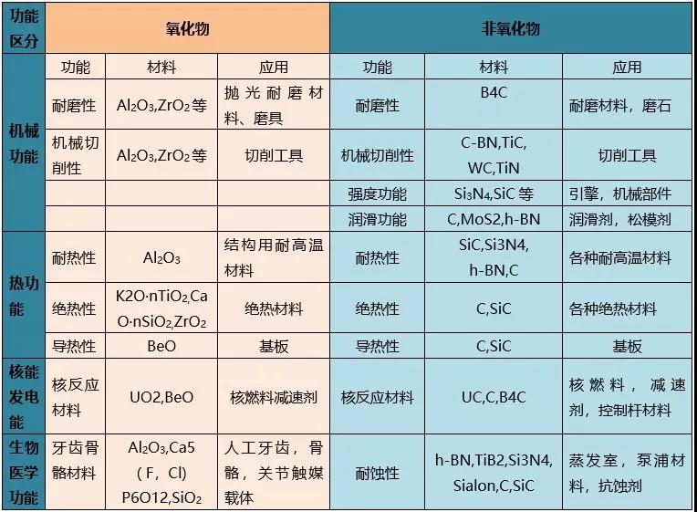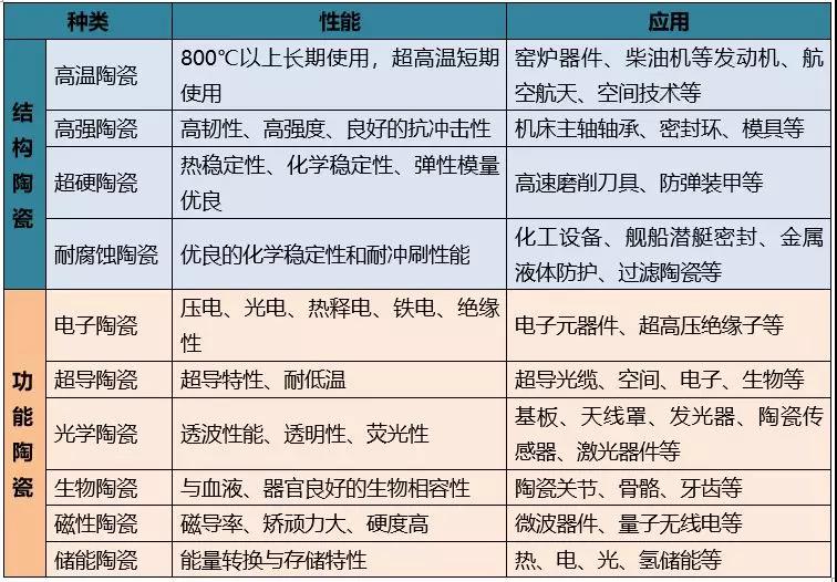 先進(jìn)陶瓷應(yīng)用性能分類(lèi)